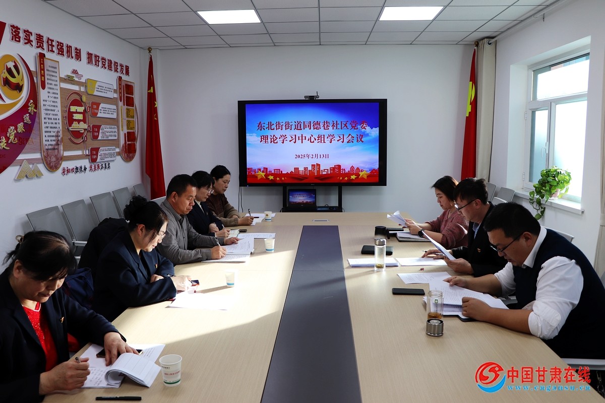 中国甘肃在线肃州讯 在新时代奋进征程中,为持续提升社区政治素养与业务能力,精准把握政策导向。肃州区东北街街道同德巷社区召开2月理论学习中心组学习会议。社区领导班子成员、社区党委委员、各楼院党支部书记参加会议。