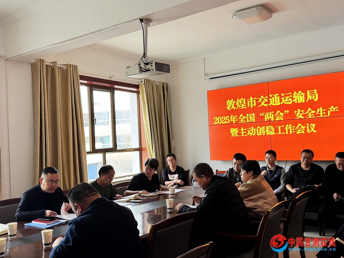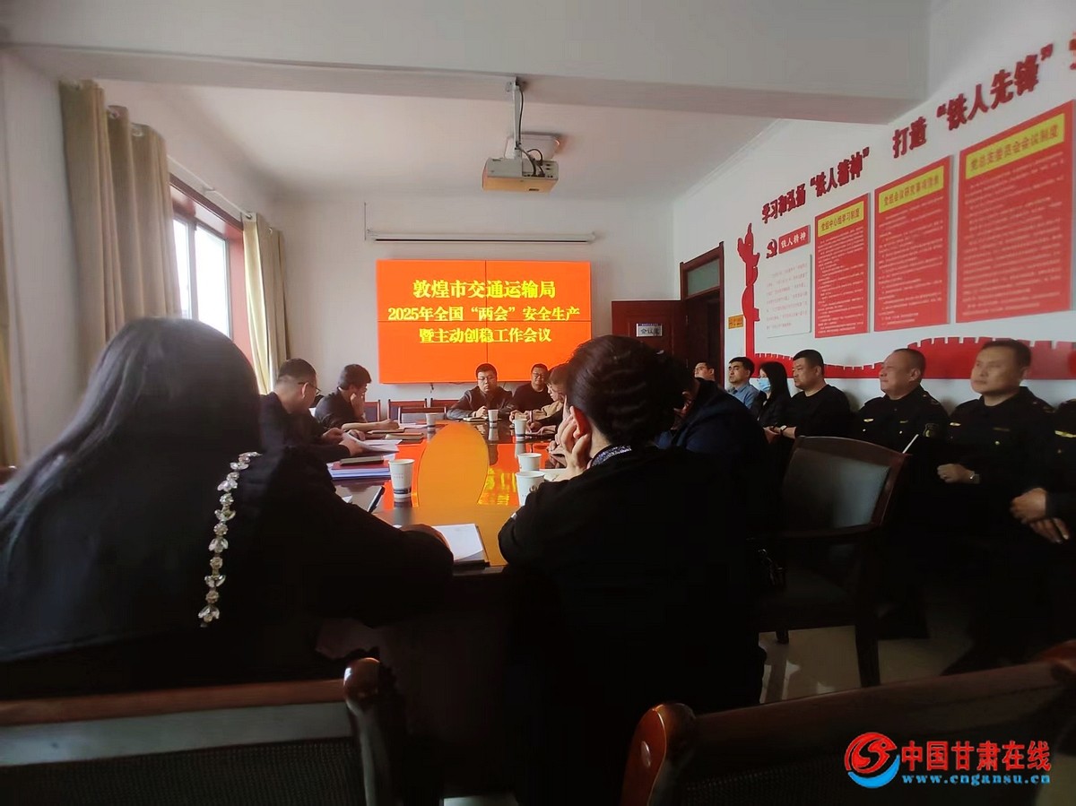 中国甘肃在线敦煌讯 为切实做好2025年全国“两会”期间行业安全维稳工作,进一步落实落细主动创安主动创稳各项机制措施,确保全行业安全稳定。2025年2月28日,敦煌市交通运输局在局机关四楼会议室召开了2025年全国“两会”安全生产暨主动创稳工作会议。