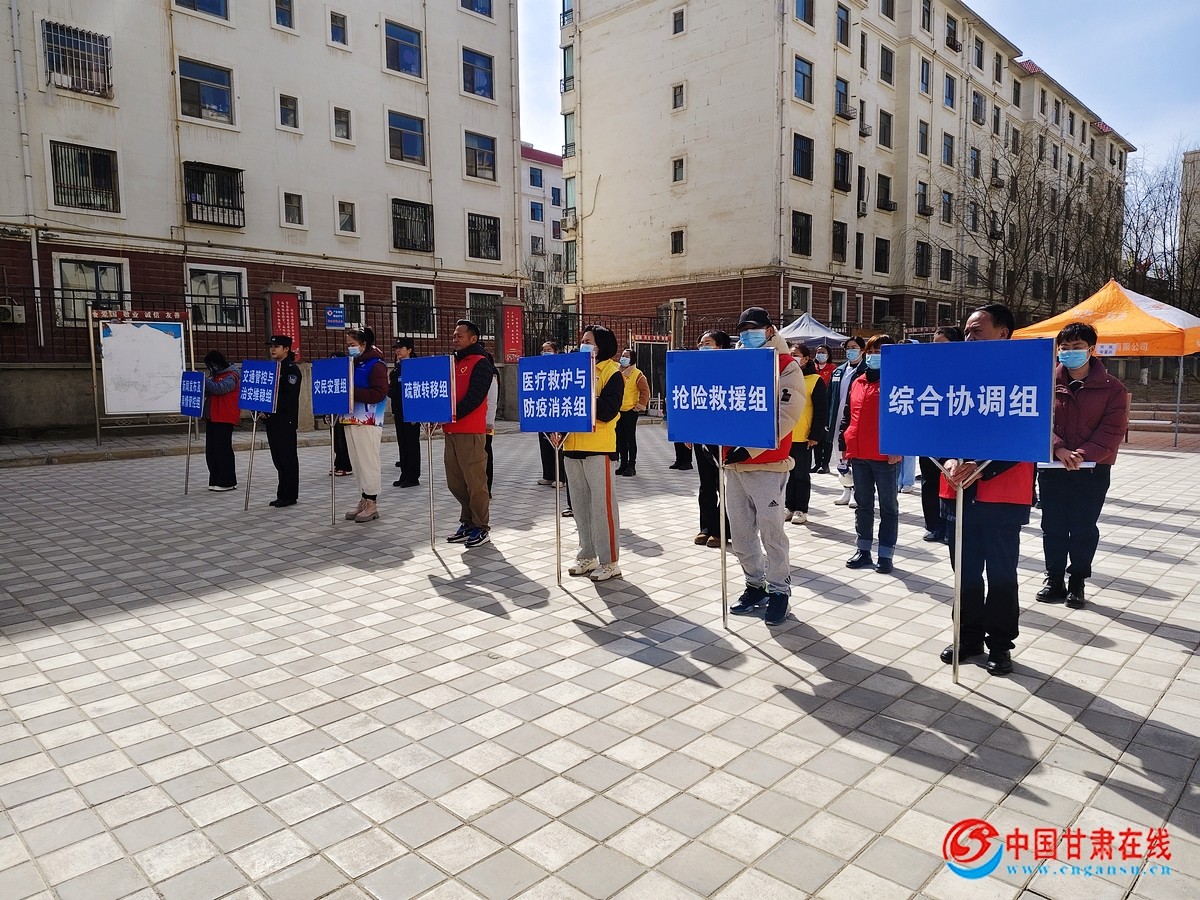 在演练中,模拟了肃州区发生4.8级地震的场景,震中区域房屋受损严重、道路损毁、通讯中断,并有大量人员被困。社区党委迅速启动地震应急预案,医疗、公安、抢险救援、人防等多支队伍联动,展开救援行动。