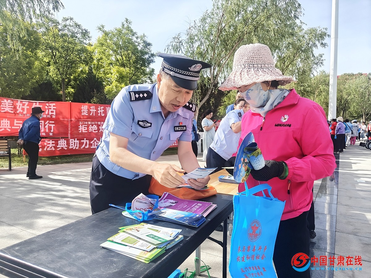 中国甘肃在线玉门讯 为深化第五个“民法典宣传月”活动成效,推动法治理念深入人心,5月28日,玉门市公安局禁毒大队在市政广场开展“民法典+禁毒”主题普法宣传活动,为群众送上法治“双重礼”。