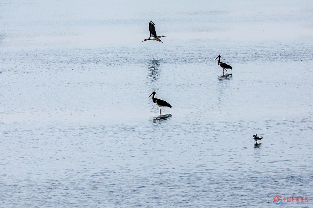 中国甘肃在线金塔讯(作者:曹红祖 李永华)2025 年 8 月 4 日,甘肃省酒泉市金塔县芨芨水库湿地,一场壮观的“鸟类盛会”精彩上演。国家一级保护野生动物黑鹳,与白鹭、灰雁、赤麻鸭等众多鸟类在此集结,它们或翱翔天际,划出优美弧线;或嬉戏湖面,激起粼粼波光;或低头觅食,尽显悠然自在,构成了一幅人与自然和谐共生的动人画卷。
