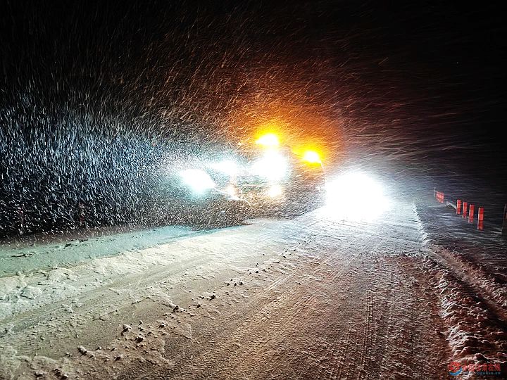 12月11日的第一轮降雪过程中,寒潮裹挟凛冽寒风侵袭敦煌,细密雪粒转瞬化作漫天飞雪,部分路段伴随8级阵风及断崖式降温,S240线夹山、背阴等路段出现短时强降雪,积雪快速堆积,作业环境极端恶劣。“雪情就是命令,保畅就是责任!”敦煌公路段全体干部职工迅速集结,一场与风雪竞速、为民生护航的保畅战即刻打响。除雪车轰鸣启程,驾驶员紧握方向盘紧盯路况,精准操控推雪铲将积雪推向路肩;撒布车紧随其后,均匀播撒融雪剂,形成“推雪+撒布”的高效作业链条。