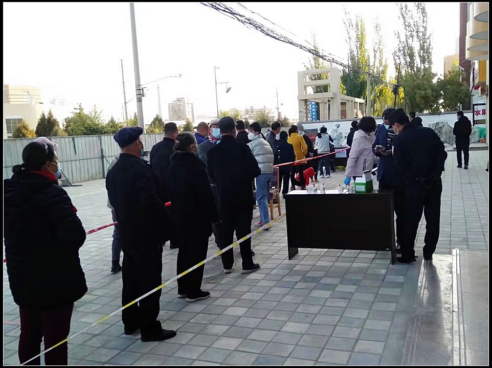 11月2日上午八时,肃州区城区全员新一轮核酸检测工作全面开展。东南街街道解放路社区按照核酸检测要求,改进之前工作中出现的不足,科学谋划,在之前核酸检测的基础上迅速开展为期一天新一轮核酸检测工作。本着“不漏一户,不漏一人”的任务目标,解放路社