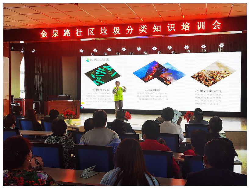 “错放是垃圾,分类是资源”。为推进生态文明建设,切实做好垃圾分类工作,近日,东南街街道金泉路社区组织辖区物业公司、居民群众近70余人开展垃圾分类知识培训。培训会上甘肃源芬环境科技有限公司授课老师,通过PPT详细介绍了有关垃圾分类的知识。她以