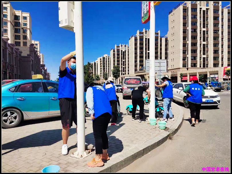 为全面阿做好新冠肺炎疫情常态化防控工作,玉门市新市区街道南街社区新时代文明实践站,积极开展环境卫生整治行动,切实有效提升居民辖区环境卫生治理水平。一是抓好常态化治理。结合疫情防控,加大对公共区域的卫生保洁力度,加大垃圾清运和点位保洁力度,提
