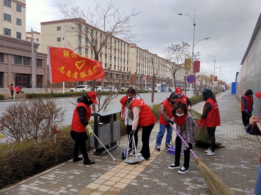 为加强辖区环境卫生水平,改善人居公共卫生环境,4月2日,解放路社区组织全体干部,城管志愿者、辖区物业公司等100余人开展了“清污消土”志愿服务活动。活动中,社区干部和城管志愿者们纷纷发扬奉献精神,不怕脏,不怕累,认真细致的捡拾杂物,规范非机