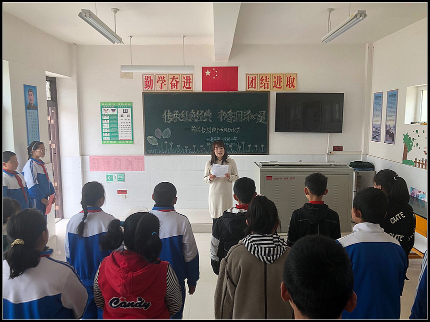 为进一步推进书香校园建设,营造良好的校园阅读氛围,让书籍走进教师、学生们的心灵,3月31日下午,山水梁小学全体师生齐聚一堂,举行了山水梁小学“传承红色经典,书香润泽心灵”校园读书节启动仪式。校长为读书节启动仪式进行了精彩致辞。她引经据典,道