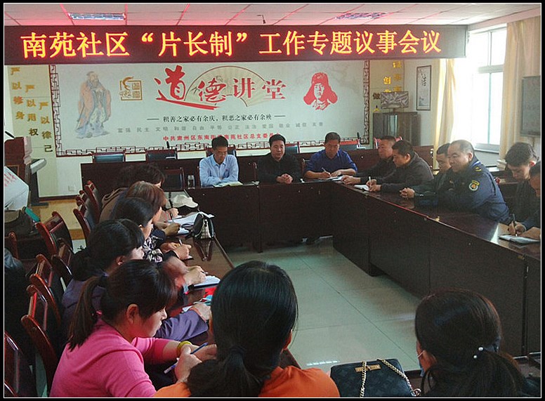 近日,南苑社区召开“南苑社区‘片长制’工作专题议事会议”,社区领导、城管办、各网格工作人员以及驻南苑社区“片长”等30余人参加会议。会上,南苑社区片长就“片长制”实施以来取得的成绩给予了充分肯定,并指出客观存在的问题:一是微信工作群发的照片