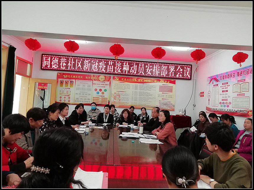 3月29日下午,肃州区东北街街道同德巷社区组织社区全体干部、各支部书记、各小区物业负责人,召开疫苗接种宣传动员部署会议,传达学习全区新冠病毒疫苗接种工作会议精神,对社区新冠病毒疫苗接种工作进行再安排再部署。会议要求,社区全体工作人员高度重视