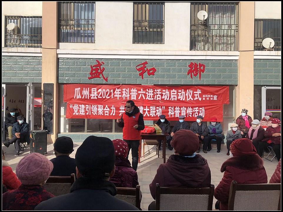为了让老年朋友能安享晚年,重视老年人的日常生活及健康状况。近日,瓜州县渊泉镇联合瓜州县科学技术局,在福利巷社区盛和御园小区开展科普宣传进小区 “关爱老人送温暖”志愿服务活动。活动中电商讲师王洋为居民们介绍一些科普的相关知识,如种植技术、云传