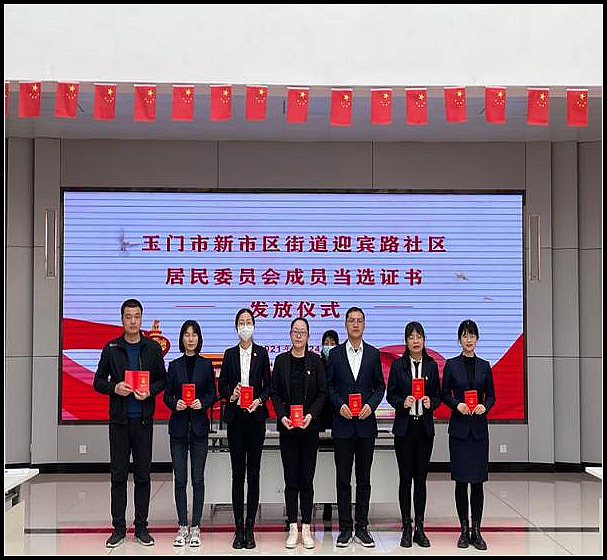 • 迎宾路社区举行新一届社区居民委员会、居务监督委员会成员当选证书颁发仪式