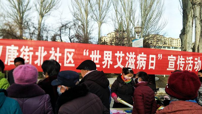 中国甘肃在线肃州迅 12月1日是第33个“世界艾滋病日”。为进一步深入宣传艾滋病防治知识,营造全民参与艾滋病防治良好氛围。12月1日下午,酒泉市肃州区汉唐街北社区卫健办工作人员在清真寺民族团结广场举办了以“携手防疫抗艾,共担健康责任”为主题