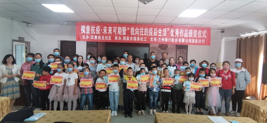 近日,汉唐街北社区联合酒泉市瑞泽社会工作服务中心举行了携童抗疫·未来可期暨“我向往的疫后生活”优秀作品表彰会,孩子们用作品描绘出了社会各界在抗击疫情战斗中所体现出的社会责任、人间大爱和疫情结束后的春暖花开,表达对逆行战士的敬畏,有期待疫后美
