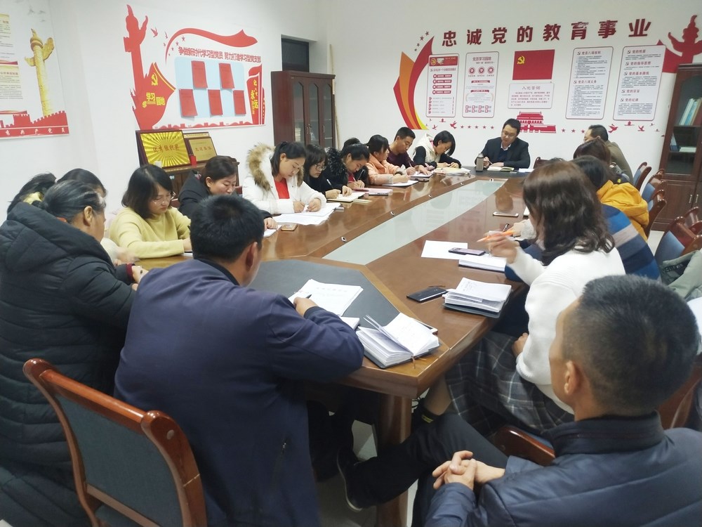 根据中共瓜州县教育局党组《关于教育系统学习贯彻党的十九届四中全会精神的通知》。11月26日晚上,瓜州县锁阳城镇中心小学全体教职工召开了学习贯彻党的十九届四中全会精神专题研讨交流会。会议由党支部书记汤国强主持。会上,支委会班子成员围绕十九届四