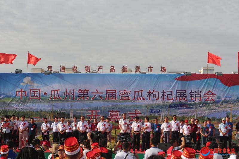 中国甘肃在线瓜州讯(文/图:王烁彤)7月26日,中国·瓜州第六届蜜瓜枸杞展销会在甘肃省酒泉市瓜州县开幕。展销会的主题为“做强特色产业,弘扬瓜州文化,宣传城市名片”。此次活动由中共瓜州县委、县政府主办,大