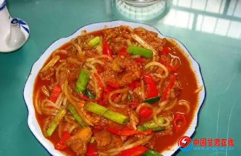 • 甘肃省酒泉市美食鸡丝肉片麻花,清泉羊羔肉