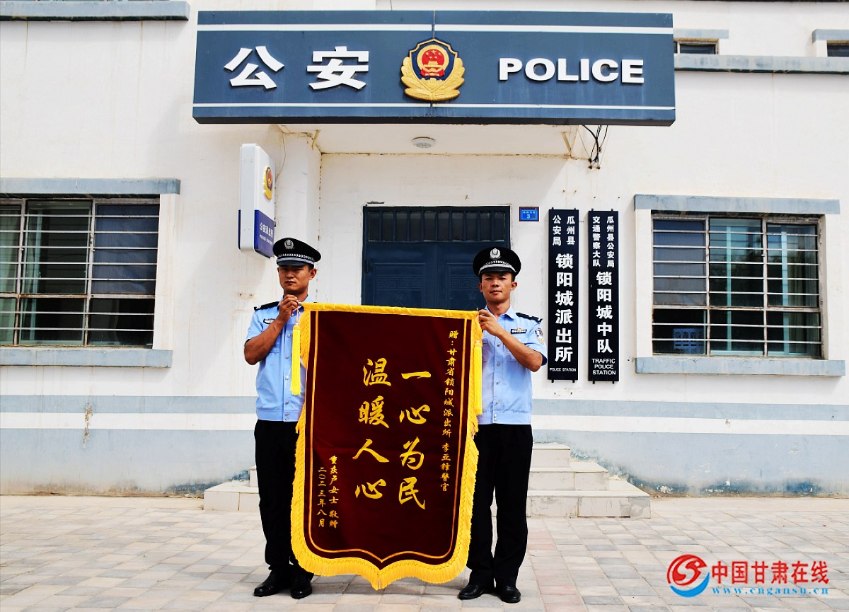 中国甘肃在线瓜州讯(通讯员:聂小洋)近日,一面锦旗从重庆市跨越千里来到甘肃,送到瓜州县公安局锁阳城派出所,锦旗上写着“一心为民,温暖人心”,是一名远在千里之外的重庆市卢女士赠送。2023年7月31日,锁阳城派出所民警接到一游客报警称:“其一