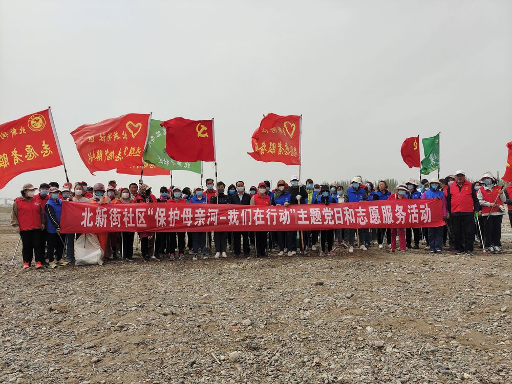为深入学习贯彻党的二十大精神和习近平生态文明思想,普及新时代文明实践志愿服务理念,宣传河流治理、保护生态环境的重要性,5月6日,北新街社区组织党员干部、入党积极分子、网格长、志愿者共70余人共同到北大河开展“‘河’我一起,保护母亲河”主题党