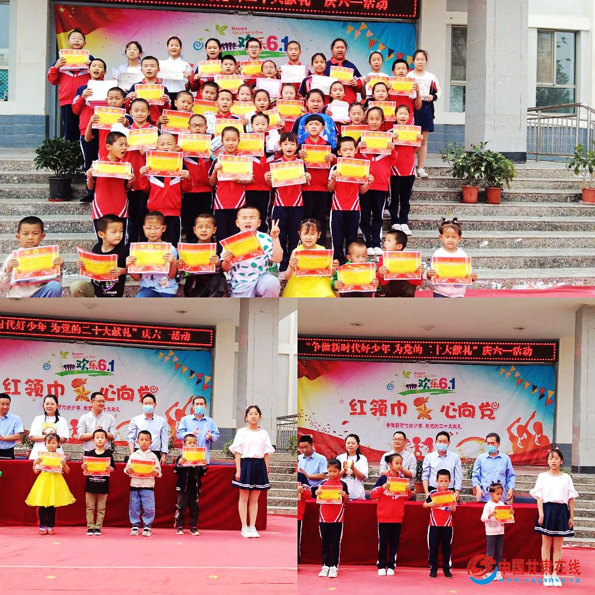 中国甘肃在线瓜州讯 六月的阳光灿烂夺目,六月的鲜花绚丽芬芳,六月的笑脸如花绽放,六月的歌声随风飘扬!在欢声笑语中,同学们迎来了一年一度的“六一”国际儿童节。别样六一,“童”样精彩。6月1日,在这个属于孩子们的节日里瓜州县锁阳城镇中心小学精心