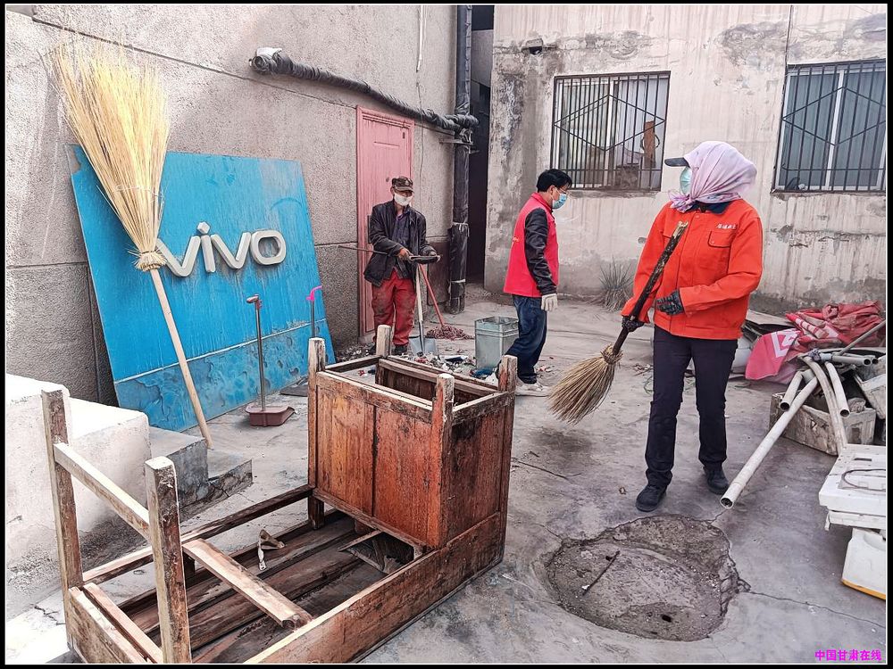 中国甘肃在线玉门讯 为深入开展爱国卫生运动,纪念爱国卫生运动70周年,2022年4月14日下午,玉门市新市区街道南街社区开展了一场“爱国卫生”大扫除活动。社区工作者和志愿者们结合当前疫情防控需求积极参与活动,共同为辖区打造优美、舒适、整洁的
