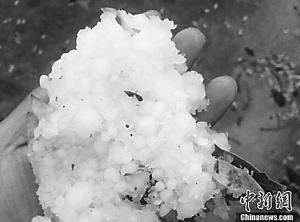 9月12日下午5时许,榆中县境内的三角城、清水驿、甘草店等乡镇遭遇暴雨和冰雹。玻璃球大小的冰雹持续十多分钟,造成当地秋作物受损。