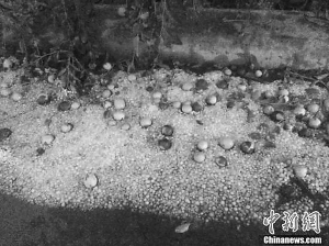 甘草店镇一位姓司的村民告诉记者,冰雹持续了有15分钟,最大的冰雹有鹌鹑蛋那么大,冰雹结束后,地面都是白的。