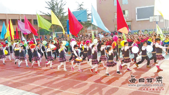 近日,安宁区教育系统以“我运动,我健康”为主题在辖区学校开展了迎接“十一”的主题运动会,引导全体师生家长多运动,多锻炼,提倡绿色健康生活。图为安宁区十里店第二小学田径运动会现场。(来源:每日甘肃网)