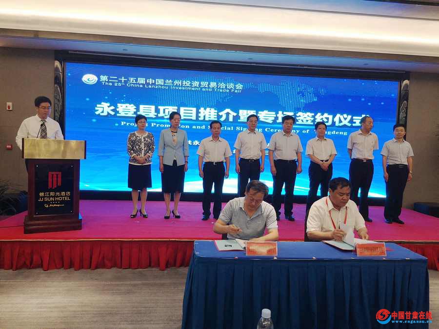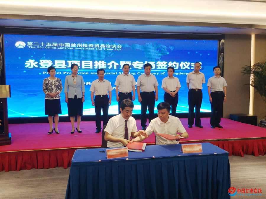 中国甘肃在线兰州7月5日讯(文/图:王烁彤 责任编辑:赵小春)记者在7月5日举行的第二十五届中国兰州投资贸易洽谈会永登县项目推介暨专场签约仪式上了解到,永登县在市专场和县专场共签约项目35项,签约总资金112.37亿元。其中,市专场签约项目11个,签约总资金52.3亿元;县专场签约项目24个,签约总资金60.07亿元。今年以来,永登县瞄准产业发展方向,精准凝炼储备项目,紧抓“工业强县”战略,围绕十大生态产业谋划了一批规模优势突出、功能定位清晰、集聚效应明显、辐射带动力强的战略型大项目、好项目。