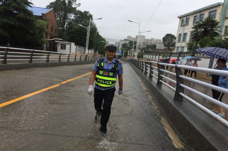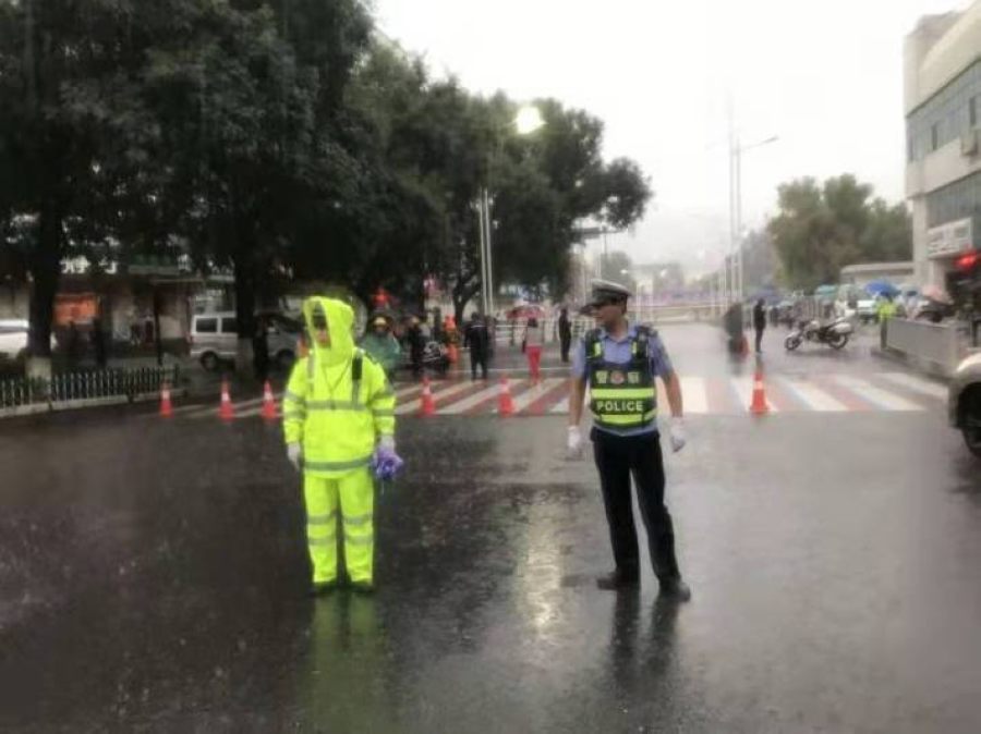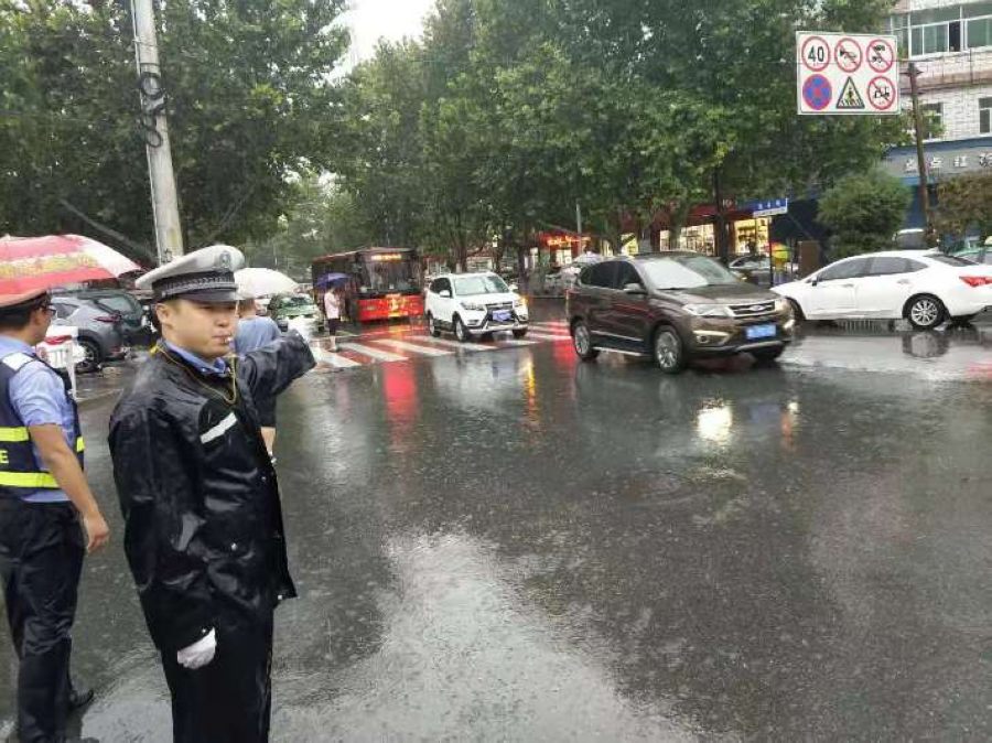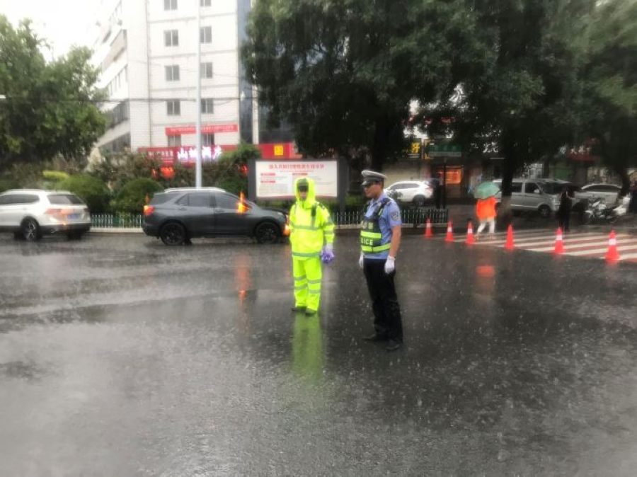 截止发稿时,麦积交警城区二中队全体民警仍冒雨扑在道路上,全力以赴应对极端暴雨造成的交通拥堵。(通讯员:崔添龙)