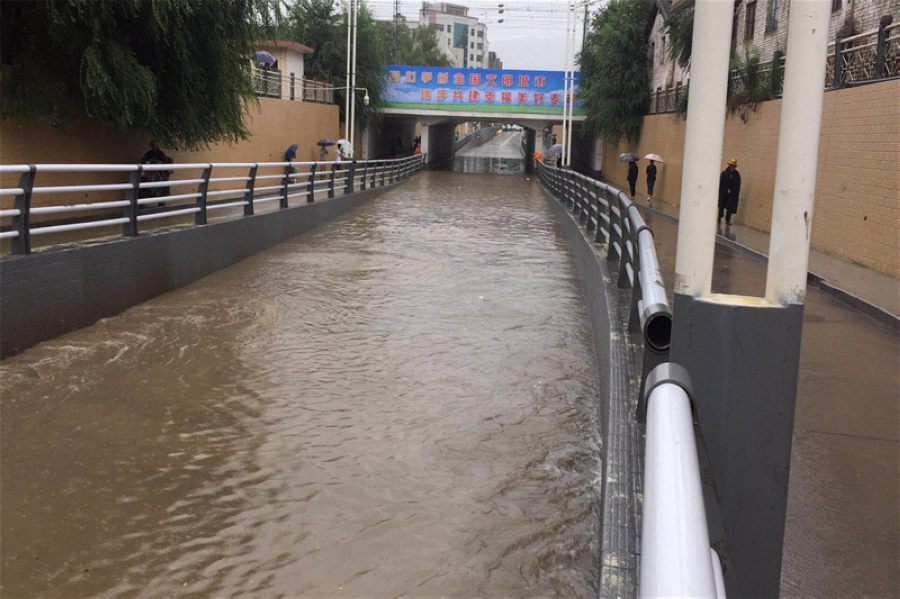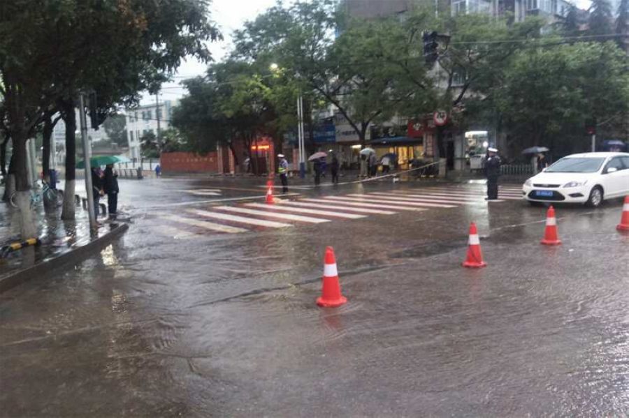 中国甘肃在线天水讯 2019年8月2日下午,天水市麦积区出现持续降雨,导致部分路段积水严重,影响道路正常通行,造成局部区域交通拥堵。