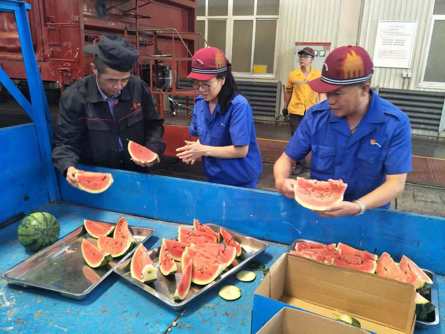 中国甘肃在线兰州讯(通讯员 王逸君)为切实发挥党组织的战斗堡垒作用,体现党组织和党员着眼安全生产、情系现场职工、服务一线群众的是职能属性,兰州西车辆段兰州西检修车间党总支面对持续高温,积极组织车间党员干部为生产一线职工“送清凉”,在党总支书记的带领下,坚持每天将矿泉水、西瓜等防暑用品及时送到一线职工手中,赢得了现场职工的一致赞誉。