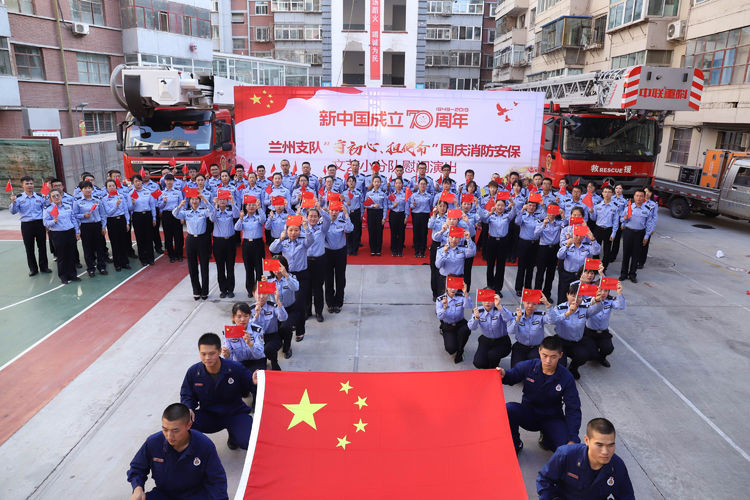 为庆祝中华人民共和国成立70周年,9月29日,兰州市消防支队城关区大队组织指战员、消防文员开展“我和国旗有个合影”摄影活动,以此表达祝福祖国、感恩祖国、热爱祖国的真挚情意。