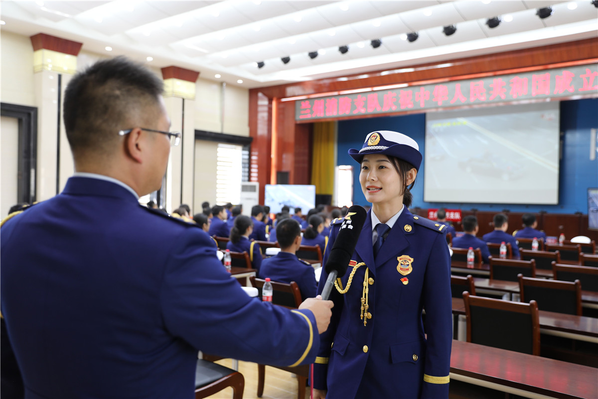 中国甘肃在线兰州讯 10月1日上午,兰州支队组织指战员收听收看了庆祝中华人民共和国成立70周年纪念大会、阅兵式和群众游戏。支队党委常委、机关全体指战员在视频会议室集中收听收看,各大中队指战员在各视频会议室进行了收听收看。