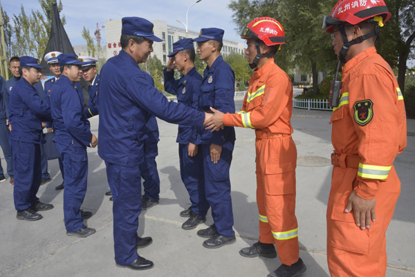 在祖国70华诞即将到来之际,兰州支队赵青支队长、党庆文政委带领其他党委常委,分赴基层大(中)队、专职消防员新训大队、总队“四会”教练员集训队,向基层指战员送去节日的祝福。期间,还对烈士家属、因公牺牲、退休老干部、患病指战员、家庭困难指战员等开展了专门慰问,为他们带去了支队党委的亲切关怀和组织的温暖。