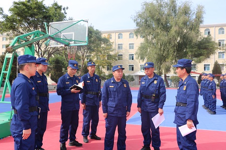 在总队“四会”教练员集训队、城关区大队,赵青支队长向大队全体指战员和“四会”教练员集训队员致以诚挚的问候。他要求城关区大队继续发扬消防队伍的优良传统和作风,积极应对各种考验和挑战,更好地履职尽责,扎实做好国庆70周年消防安保攻坚战,确保万无一失。他要求四会教练员集训队员一定要遵守集训纪律,按照集训队要求严格训练,全面提高自身业务技能,严格落实各项安全防范措施,争取在比武中取得好成绩。