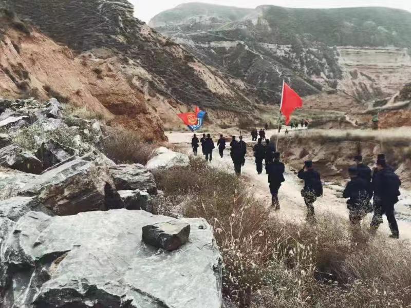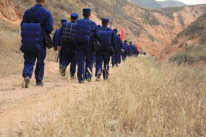 下午14时,一声紧急集合哨后,全体指战员立即背上自己的背包、挎包和水壶,整装出发。野外徒步的兴奋让全体指战员不觉寒冷不觉累,背负着40斤的野外装备依然番号嘹亮、歌声不断,领导干部率先垂范、你追我赶,在弯弯曲曲的小道上迎难而上。大家在长征精神的感召和指引下相互扶持、彼此鼓励。每一条坎坷的土路,每一道纵横的沟壑,都折射着一个政党光荣的历史,承载着一个民族辉煌的瞬间,也使走过的每一名党员感受到了属于革命时代的记忆,仿佛置身于当年波澜壮阔的伟大场景中,受到了一次心灵的洗礼。