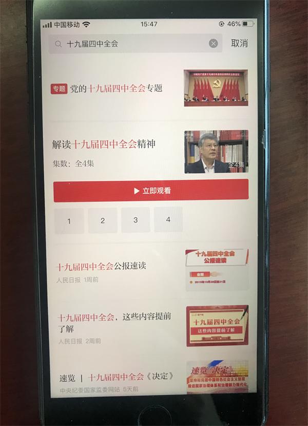 连日来,城关大队迅速掀起学习党的十九届四中全会精神热潮,指战员反响热烈。大队在坚持以往传统模式学习的基础上,将学习十九届四中全会精神的主阵地聚焦新媒体,从收看直播、阅读全会报道,到关注全会进程、掌握全会重要内容精神,“学习强国APP”成为指战员第一时间走进全会,学习全会的重要途径。