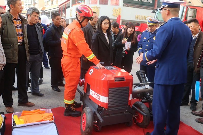 演出结束后,出席活动的领导和现场群众一同参观了消防车辆展示区、消防器材装备展示区、消防知识咨询区,并现场观摩了油池灭火、消防攻坚技能表演、破拆疏散救人操表演。为了增强活动的趣味性,现场专门设置了灭火体验互动环节。大队宣传人员详细讲解了灭火器的使用方法后,观众踊跃参与其中,过足了“消防瘾”。同时,在现场设立的消防咨询台前,现场群众踊跃扫描大队官方公众号二维码,领取消防小礼品、宣传彩页,咨询日常生活中的消防安全知识,充分调动了广大群众的积极性和主动性。