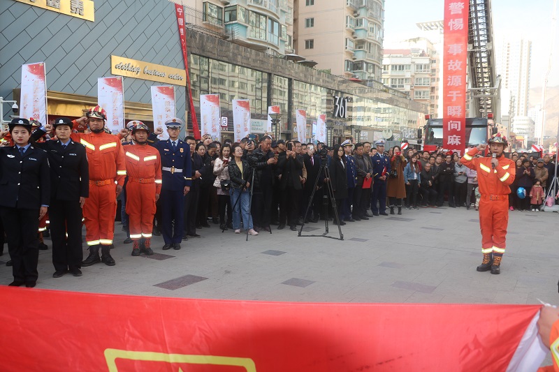 为庆祝和纪念习近平总书记向国家综合性消防救援队伍授旗致训词一周年,扎实推进“不忘初心、牢记使命”主题教育,教育激励全体指战员振奋士气斗志、凝聚意志力量,奋力推进新时代应急救援事业发展。11月15日上午,七里河大队隆重举行纪念习近平总书记授旗训词一周年暨“119”消防宣传月活动,启动仪式在七里河区建兰路步行街举行。七里河区区委常委、副区长白一方、兰州市消防救援支队副支队长王柏林、七里河区应急管理局局长王延军、七里河区消防救援大队副大队长张小宗等领导出席了此次活动。各乡镇、街道负责人,行业部门代表、企事业单位代表以及社区消防大使、消防志愿者代表等共计300余人参加了启动仪式。