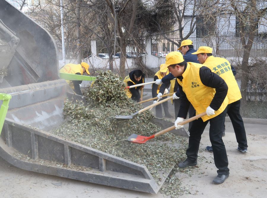 由于此次集中整治任务重、工作量大,在整治工作开始前,社区工作人员先对各老旧小区乱堆放、毁绿种菜、乱扔垃圾、垃圾箱清运不及时、乱张贴小广告等情况进行摸底登记,皋兰县文明办根据摸底情况按照整治难易程度制定清理方案。在整治过程中,志愿者们挽起袖子,清理绿化带内的生活垃圾、杂草,将堆积垃圾的卫生死角和落叶进行清理整洁,将建筑垃圾和装满的垃圾箱及时清运,将墙壁上乱张贴的小广告彻底铲除,将楼道内堆放的废弃物清除干净,并耐心的与有抵触情绪的居民沟通协商,同时在整治过程中加强与小区居民的沟通,开展宣传宣讲入户,了解民意,主动宣讲党的方针政策、文明城市创建、垃圾分类处理等知识,进一步提高市民对创城知识的知晓度,引导居民遵守文明公约、建设美好家园,理解、支持、参与文明城市创建。部分小区居民时不时三五成群自带工具也加入集中整治行动中,各老旧小区内一片火热朝天的劳动景象......