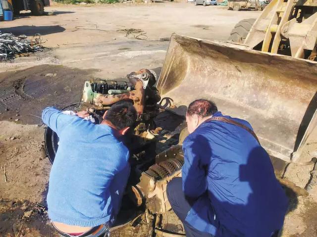 工作组成员一刻也没有休息开展走访调查活动后,得知矿场已废弃多年,矿上基本已经没有什么大型设备和车辆等。工作组又立即联系了当地巡检司镇派出所,在派出所同志的配合下,从2019年5月一次出警记录中找到了这3辆车的照片资料,几经周折之后,找到矿场负责人李某,李某说车已经拆解变卖了废铁。按照李某提供的地址,工作组连夜找到被拆解的发动机、变速箱等,由于天色较晚光线差,工作组不好确定。后来在派出所的配合下获知新线索,这3辆车的报废系弥勒市的李某某经办。经过3个多小时夜路行程,工作组在到达弥勒市李某某家中时已经快到零点,在工作组人员耐心沟通下,李某某表示支持并配合做好3辆车的注销手续,直至21日凌晨2时工作组补全承诺书和申请书后结束当日的工作。
