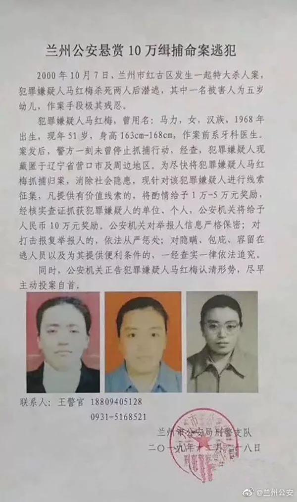 兰州公安悬赏10万通缉19年女逃犯马红梅