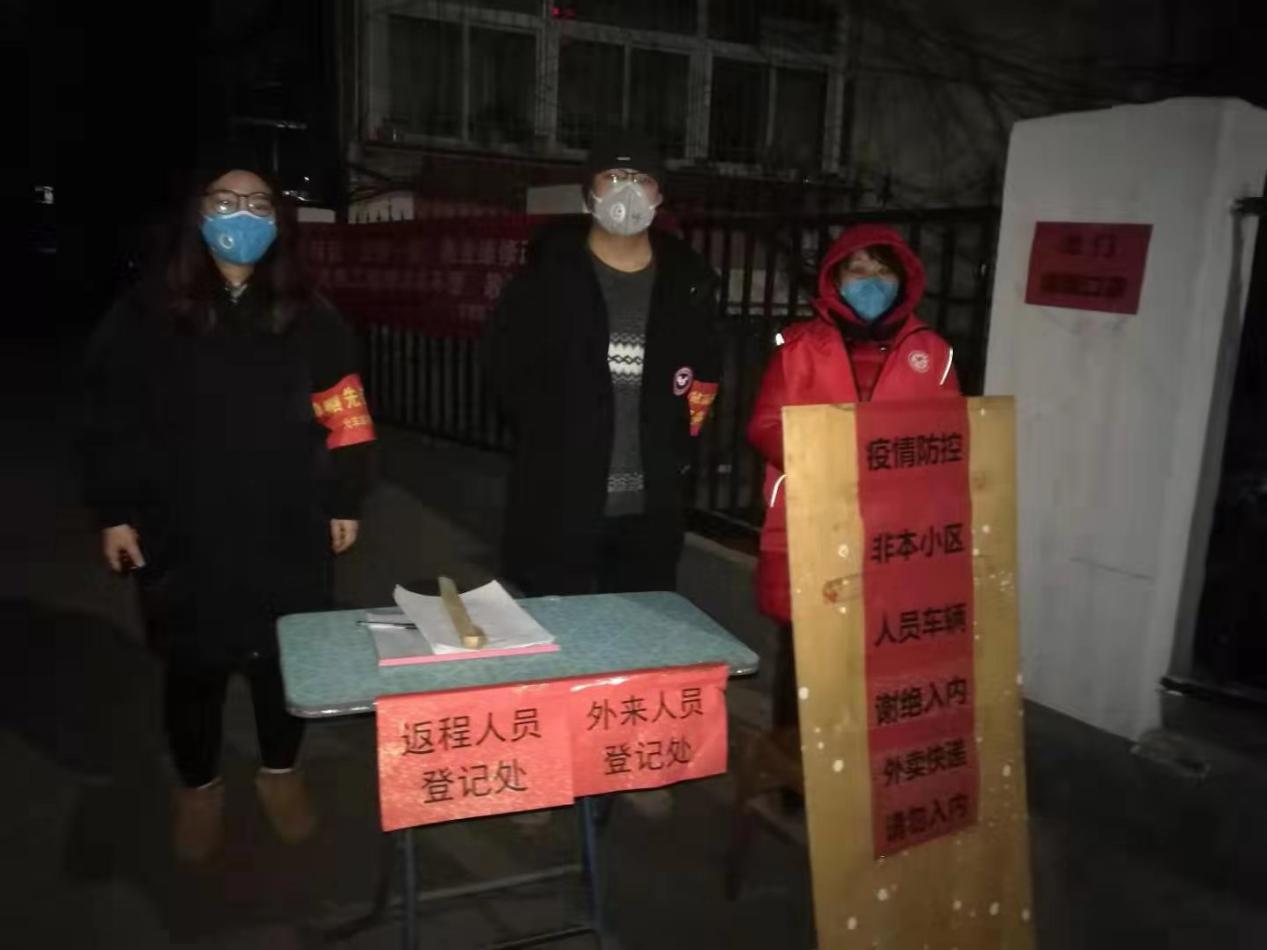 每天早晨是他们两个换班的时间,小两口分工分工明确,王时雨值夜班,王艳茹白天坚守。他们俩总是提前赶到卡口点上,对周围进行全面消杀后便开始工作。对出入小区的居民挨个进行体温监测、查验出入证,详细做好信息登记,对居民做好解释工作,争取他们的理解和配合。在值班之余,他们还积极向居民宣传防控常识,提高群众的自护能力和防范意识。吃饭都在值班点上随便凑合两口,一忙就停不下来,每次都要催很多遍他们俩才愿意歇一歇。多日的连轴工作,他们仅能在交接班的时候见到面,但双方的心意愈来愈浓。