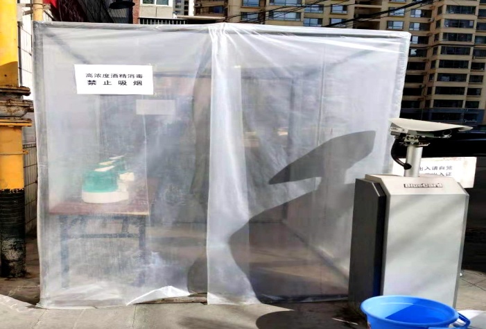 第一时间承担企业责任,建立消毒通道。对防控难点家属区进行全面接管,每天从大清早到晚上夜深人静,在小区门口设立消毒通道,为进出小区的居民进行全方位消毒、体温测试、信息登记;对不戴口罩进出的人员,进行劝阻佩戴口罩,绝不允许不戴口罩人员进出小区大门。
