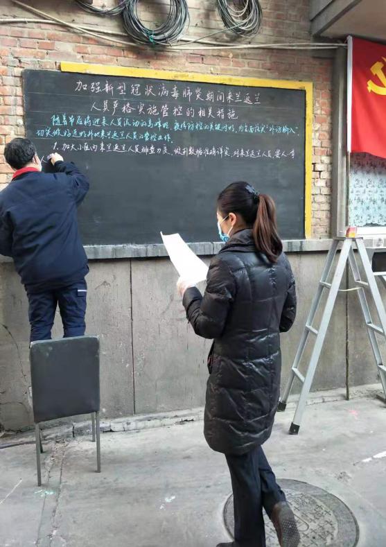 第一时间进行大力宣传。及时张贴和发放宣传材料,利用小广播反复播放疫情防控预防知识,通过黑板报、办公群、党员群、值班群推送科普防疫抗疫知识,确保将疫情防治知识宣传到户,让全体员工家属掌握最新疫情动态,做到科学防疫,远离谣言。