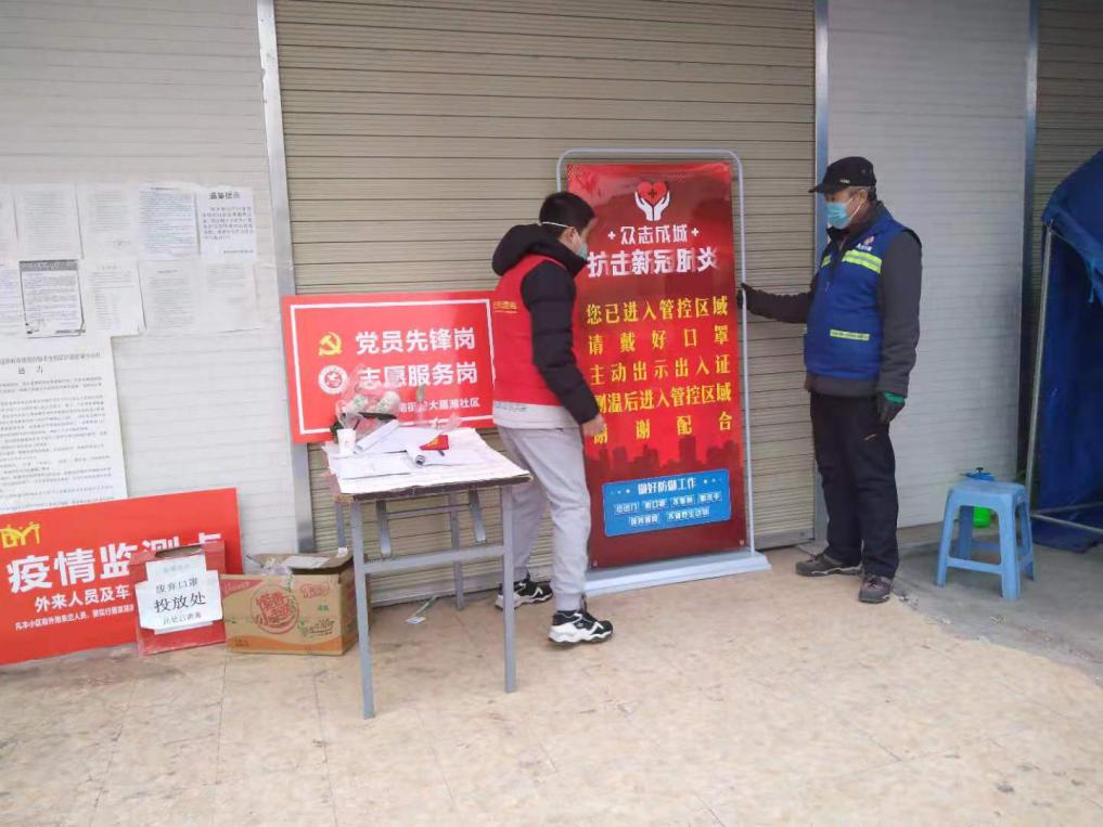 活动中,重温了入警誓词,发起“防控疫情党员先行”倡议。然后,社区党委书记将党员分为5个小分队,“宣传小分队”的党员负责深入各楼院发宣传单,粘贴宣传标语,利用远教音响、手持喇叭广播,为辖区居民新型冠状病毒感染肺炎知识和宣传防疫知识;“武汉返乡人员管控小分队”负责配合志愿医护人员做好武汉返乡人员的体温监测和居家隔离的管控,为他们提供后勤服务;“巡逻小分队”负责每天深入辖区各楼院进行明察暗访,检查有没有办理红白喜事宴席、聚众打牌和居民随便乱走的现象,一旦发现立刻进行劝阻;“卡扣点关卡监测小分队”负责各楼院卡口点车辆出入的登记和人员的体温检测,一律不准外来车辆进入;“环境卫生整治小分队”负责辖区干道卫生的清理和监督督促居民自家卫生的清理。