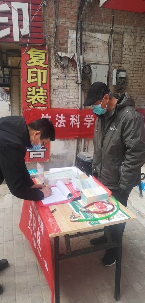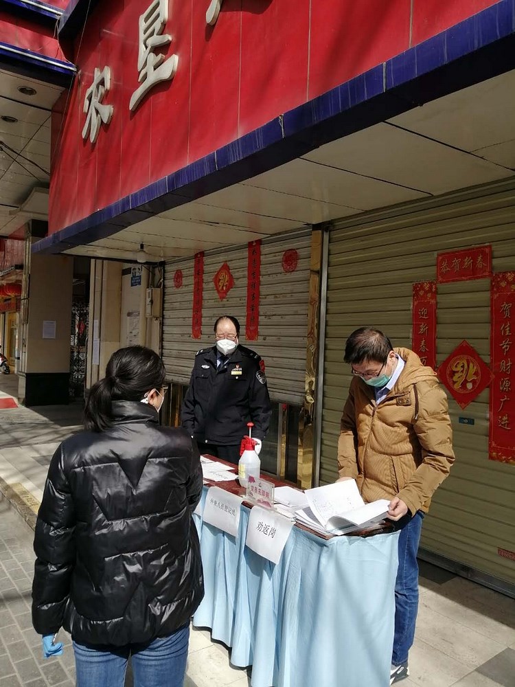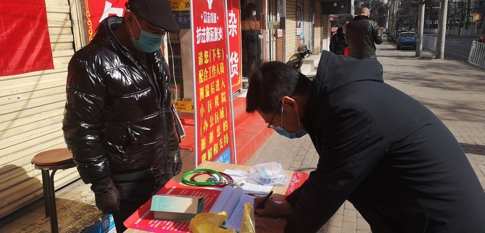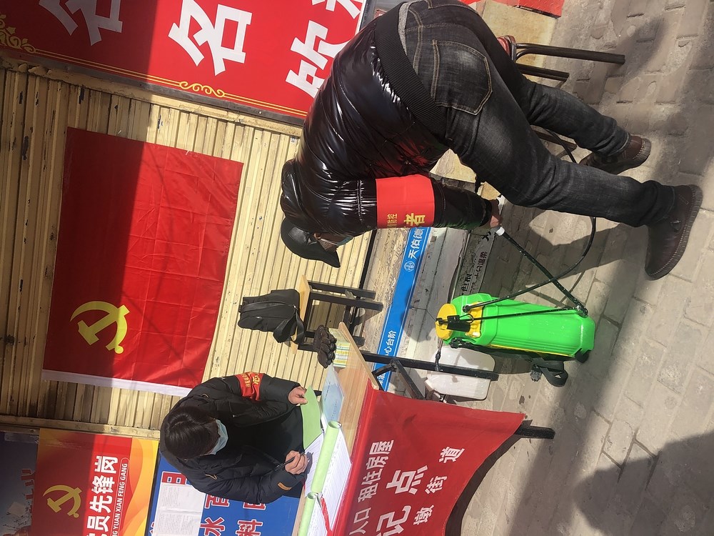 "面对疫情,我选择迎难而上,冲锋在前,兑现为人民服务、准备为党和人民牺牲一切的承诺。”春节是外地工作人员返乡的高峰期,从除夕接到防控指令开始,他没有离开过一线,和同事们一起每天奔赴在街道、小区,巡查辖区体育场馆是否按要求停业,是否做好防控措施。随后又赴街道与社区的同志们没日没夜地驻扎在居民区入口处,测体温、做记录,引导居民戴口罩、多通风、勤洗手、少外出,他挨家挨户走访排查,做详实的记录,建立健康档案。协助社区做好消杀工作,和网格员、社区工作人员一起在社区楼院张贴疫情防控知识宣传画册。他用社交软件和居民实时沟通,向群众耐心科普新冠病毒肺炎知识,讲解发热病人的多种诱因,坚定新型冠状病毒感染的肺炎“可防、可治、可控制”的信念,消除居民恐慌心理。