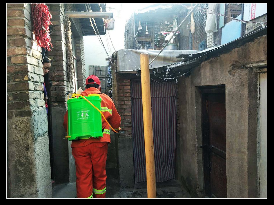 吕新胜,是红二村社区综治员,是红二村社区疫情防控工作消杀组的组长,和安铭师傅一样,他每天都会准时背着装满药水重量接近40斤的喷洒器,奔走在为辖区“三不管”楼院和偏僻的小街巷进行消杀工作的路上。同时,他还要当好各个卡口点的“值班队长”,不仅要对进出卡口点的居民、