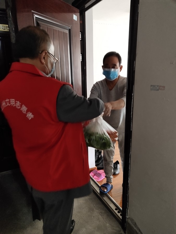 抗疫以来,社区工作人和网格员每天下沉居民区内,帮助居民代办买面、买菜、买药、充电费、燃气费等百余项事。居住在小区的赵建荣,是原兰州汽车齿轮厂下岗职工,一直以来单身生活、无儿无女,因前些年不慎摔伤髋关节和脊柱,长期行动不便,社区工作人员多次上门为他送去生活物资和疫情防控用品,他说,“是我自己不小心,导致现在这个样子,有一段时间我连活下去的勇气都没有了,以前和社区打交道不多,通过这次疫情,我真正了解到社区的辛苦和不容易,也真正感受到了党和政府的温暖,和社区的心也连得更紧了,我一定要重新站起来好好生活。”