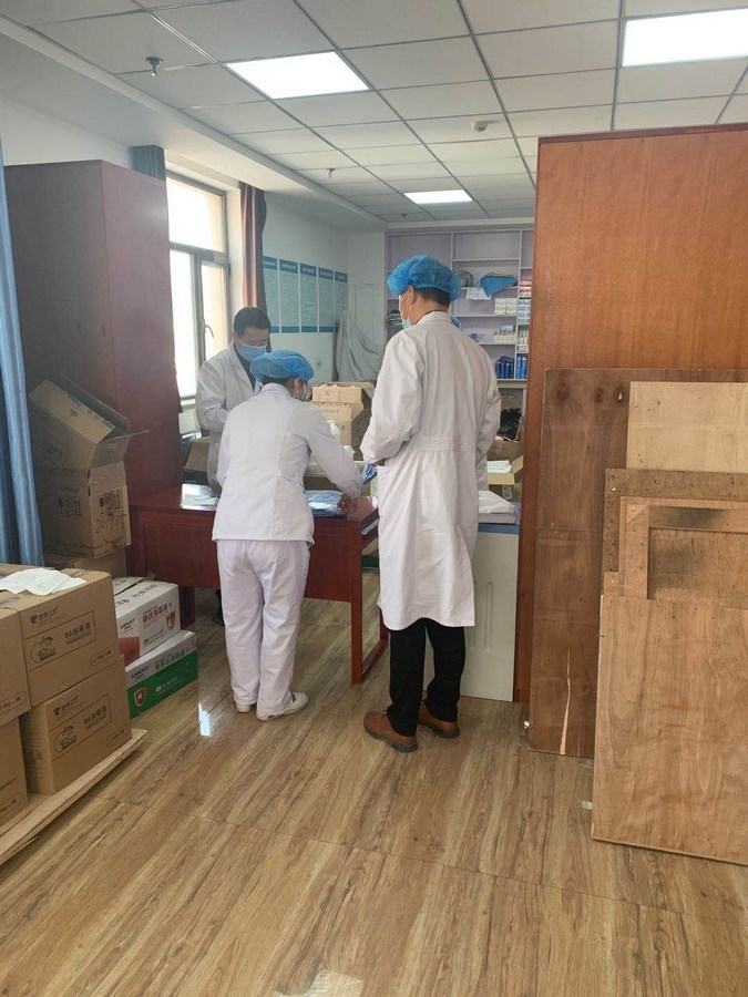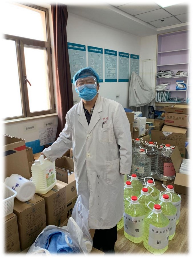 药械科吴小翔,看到物资供应不足,他多方联系自掏腰包购买一次性鞋套1000双,75%的酒精15kg捐赠于我院临床一线,解决了物资紧缺的燃眉之急,体现着药械人的担当与坚强。东岗药房库房其他工作人员,每日在完成应有的工作外,还主动承担了发热门诊预检分诊夜班和周末加班的任务。